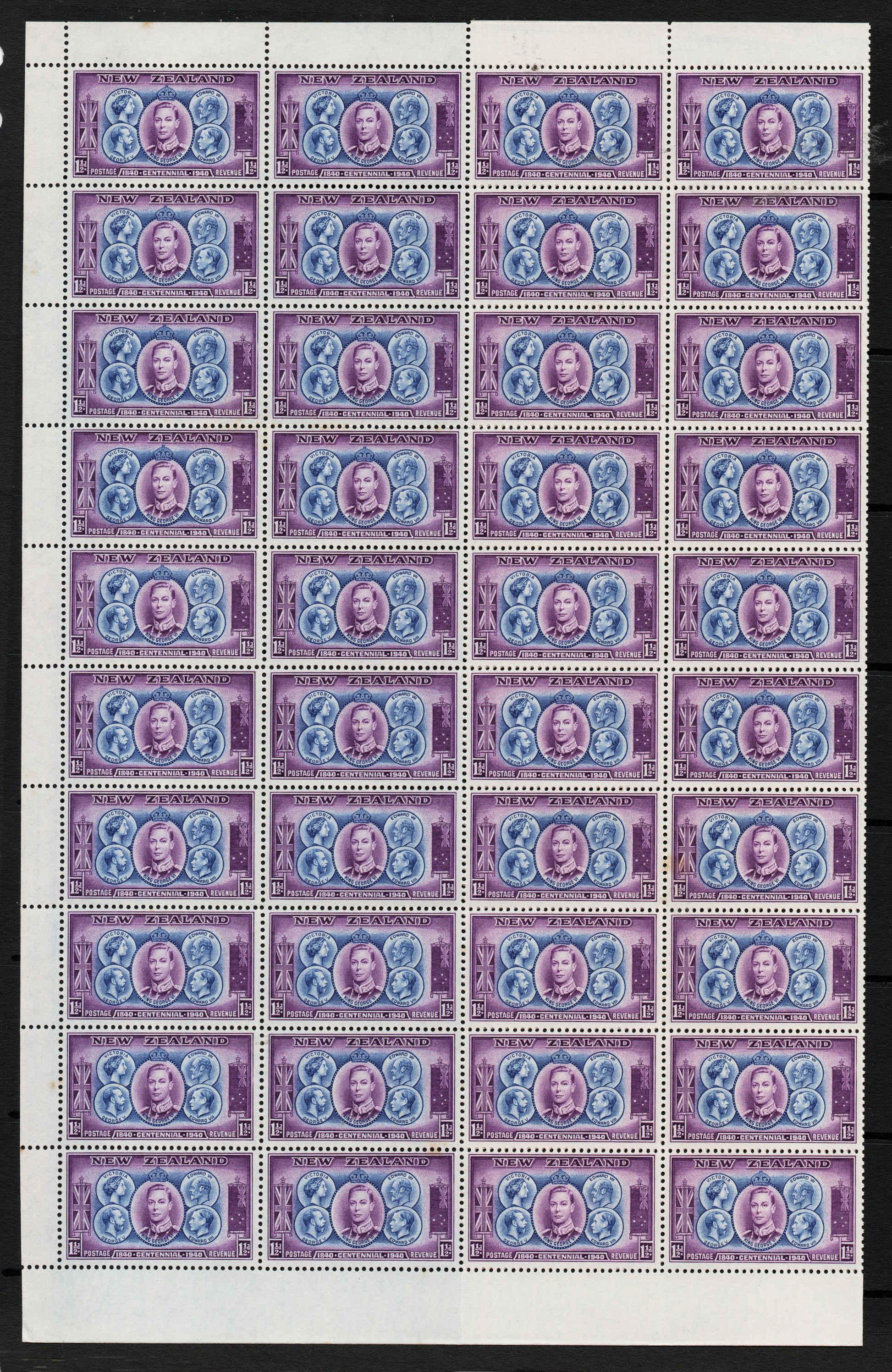 1941 New Zealand GEO VI 1½d in half sheet (folded) Unmounted Mint but small rust spot on rear