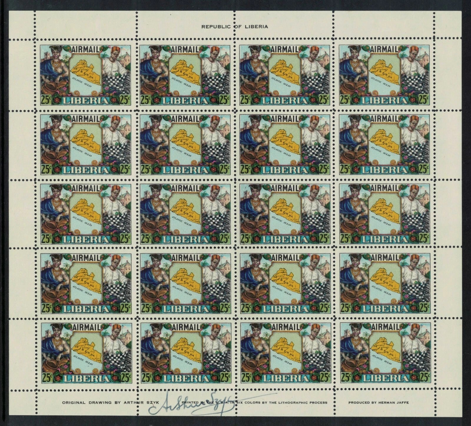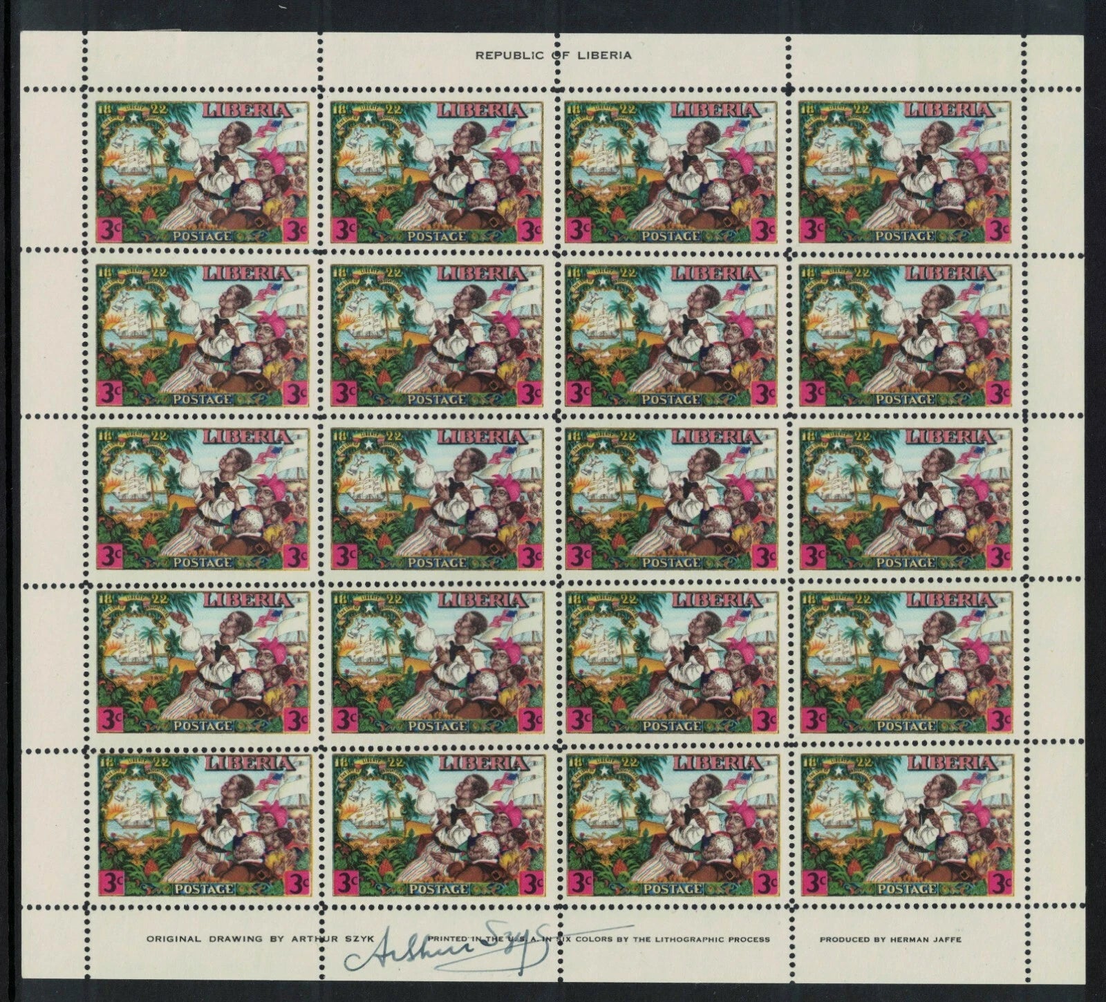 1949 Liberia Colonisation Sheets of 20 all signed by Designer Arthur Szyk