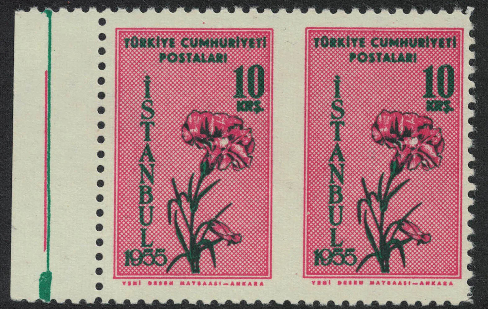 1955 Turkey Flowers 10k Unmounted Mint Horizontal Pair IMPERF between