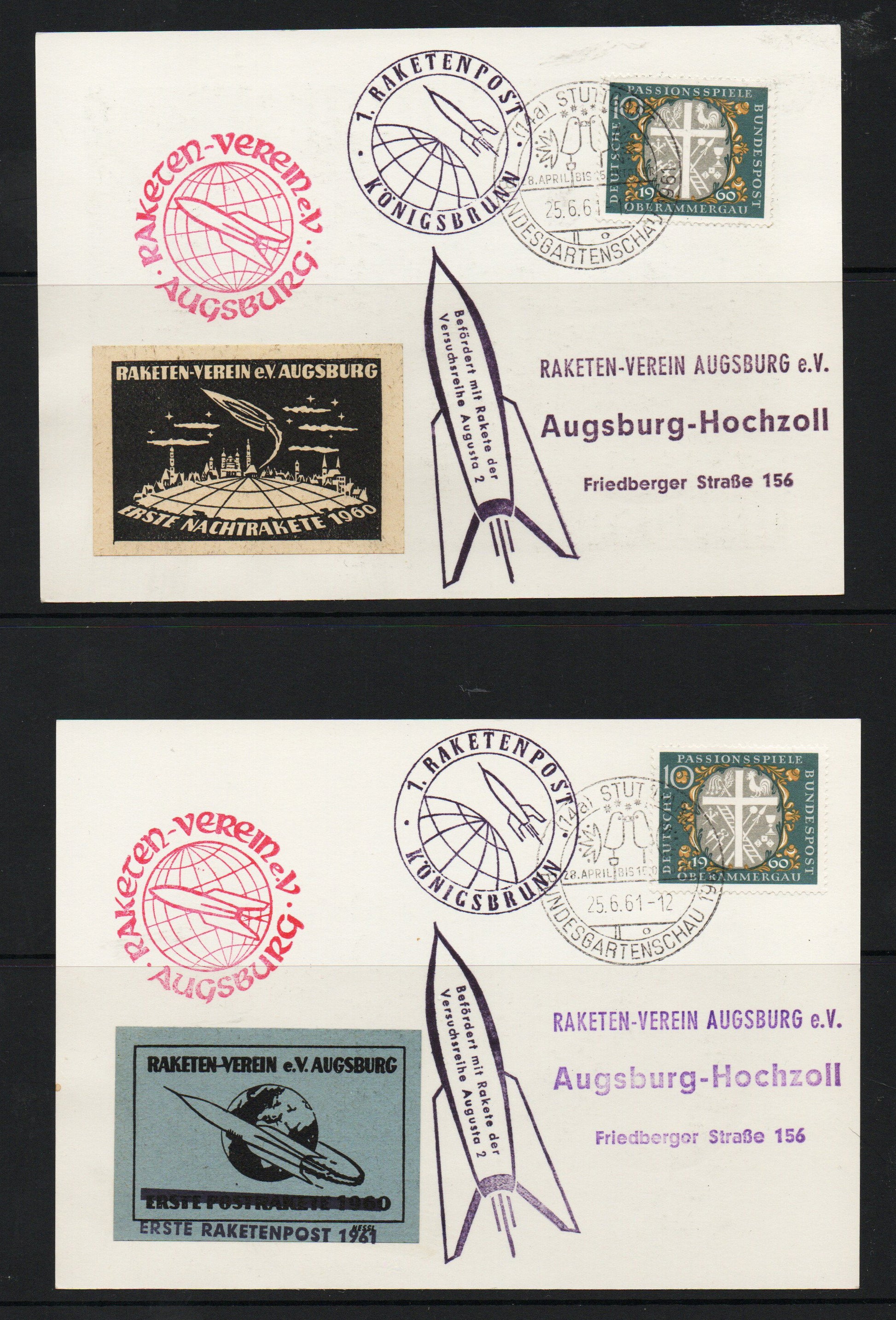 1961 Germany Oberammergau 4 x different Rocket Mail souvenir Cards, Mint condition