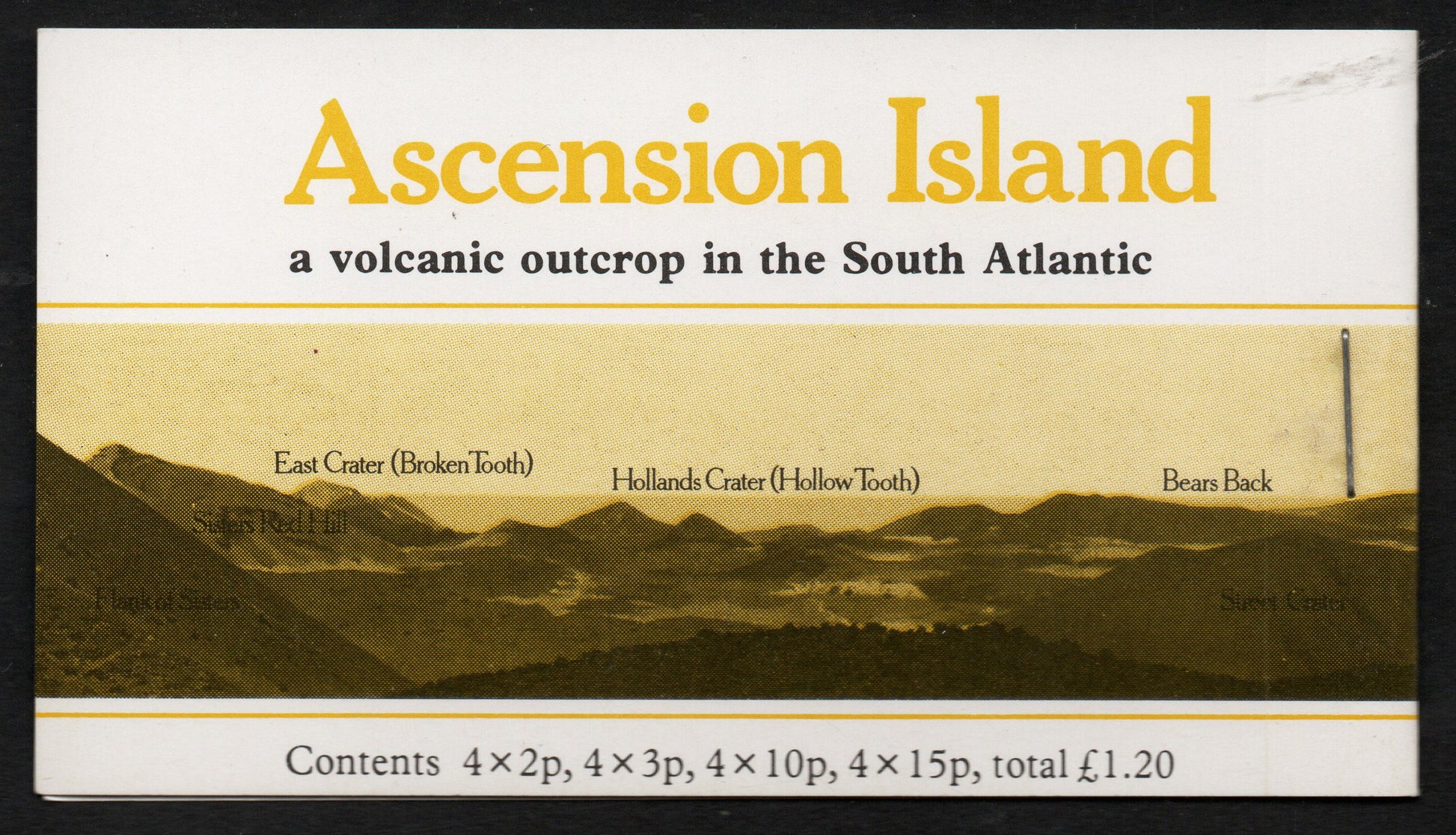 1984 Ascension "A Volcanic Outcrop" £1.20 Booklet SGB3a Complete, Yellow cover, Flower Stamps
