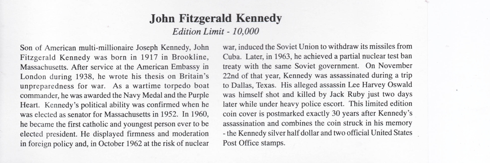 1993 USA 30th Anniv of JFK's Assassination with inset Kennedy Silver $½ (GU14)