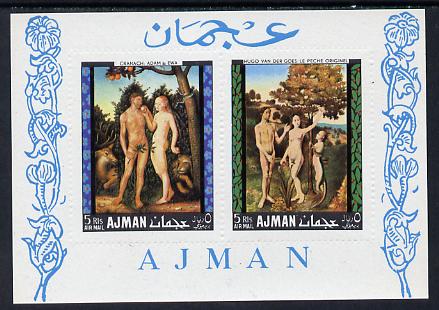 Ajman 1968 Adam & Eve Paintings perf m/sheet unmounted mint, Mi BL 41A)