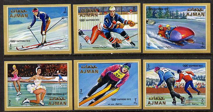 Ajman 1970 Winter Olympics imperf set of 6 unmounted mint (Mi 662-7B)