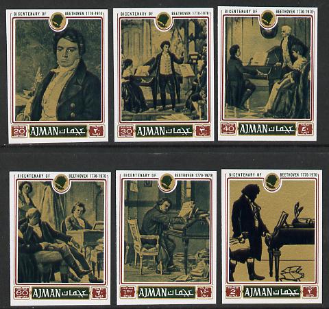Ajman 1971 Beethoven imperf set of 6 unmounted mint (Mi 794-9B),- Order 6 sets and receive sheetlets of 8 sets.