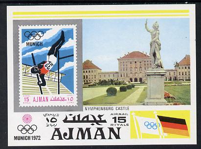 Ajman 1971 Munich Olympics imperf m/sheet (Pole Vaulter, Statue & Nymphenburg Castle) unmounted mint Mi BL 247