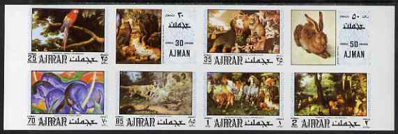 Ajman 1971 Paintings of Animals or Birds imperf set of 8 (Mi 1099-1106B) unmounted mint
