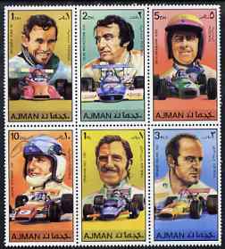 Ajman 1971 Racing Drivers & Cars set of 6, Mi 1061-66A (Jacques Ickx, J Brabham, J Stewart, G Hill) unmounted mint