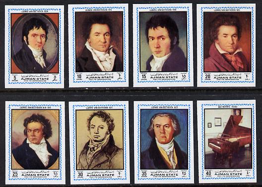 Ajman 1972 Beethoven (Paintings) imperf set of 8 unmounted mint, Mi 1336-43B