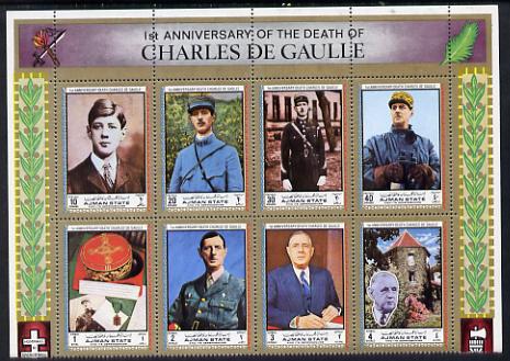 Ajman 1972 Charles de Gaulle perf set of 8 unmounted mint, Mi 2013-20A