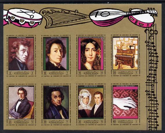 Ajman 1972 Chopin imperf set of 8 unmounted mint, Mi 1320-27B