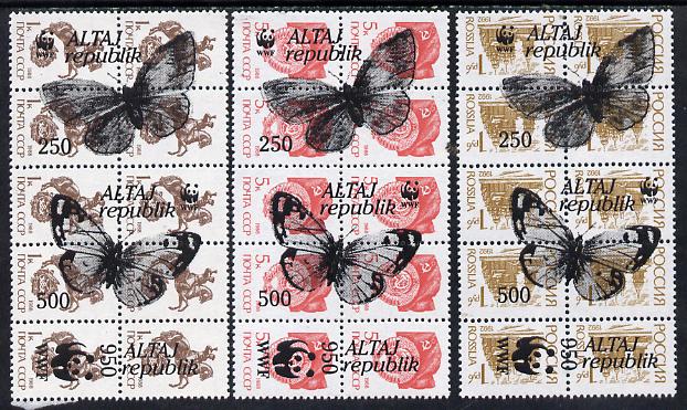 Altaj Republic - WWF Butterflies opt set of 9 values (3 se-tenant units of 3, each unit opt'd on,block of 10 Russian defs (total 30 stamps) unmounted mint