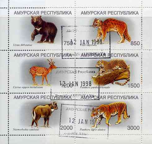 Amurskaja Republic 1997 Animals (Deer, Bear, Big Cats) perf sheetlet containing complete set of 6 cto used