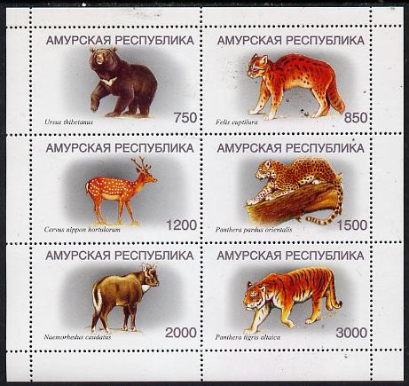 Amurskaja Republic 1997 Animals (Deer, Bear, Big Cats) perf sheetlet containing complete set of 6 unmounted mint