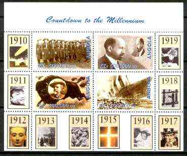 Angola 1999 Countdown to the Millennium #02 (1910-1919) perf sheetlet containing 4 values (Girl Guides, Du Bois, Buffalo Bill & Titanic) unmounted mint