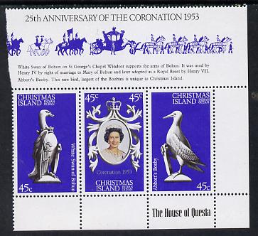 Christmas Island 1978 Coronation 25th Anniversary strip of 3 (QEII, Swan & Booby) unmounted mint SG 96-8