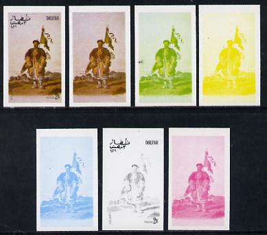 Dhufar 1977 Oriental Costumes 2b (Soldier) set of 7 imperf progressive colour proofs comprising the 4 individual colours plus 2, 3 and all 4-colour composites unmounted mint