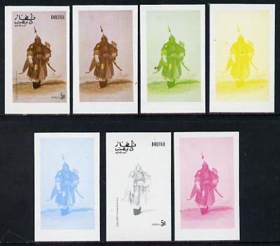 Dhufar 1977 Oriental Costumes 5b (Soldier (Full Battle Dress)) set of 7 imperf progressive colour proofs comprising the 4 individual colours plus 2, 3 and all 4-colour composites unmounted mint