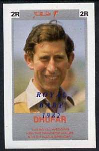 Dhufar 1982 Royal Baby opt on Royal Wedding 2R imperf souvenir Sheet (Charles) unmounted mint