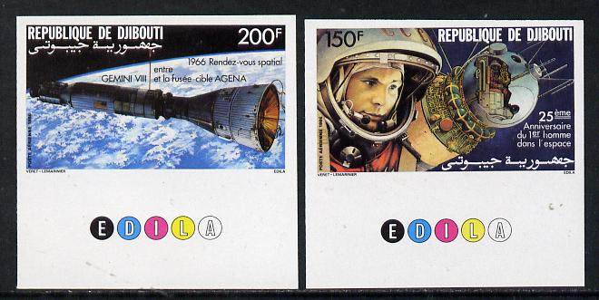 Djibouti 1986 Space Anniversary imperf set of 2 from limited printing (as SG 992-3) unmounted mint