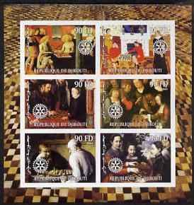 Djibouti 2004 Chess (Featured in old Paintings) imperf sheetlet containing 6 values each with Rotary Logo, unmounted mint