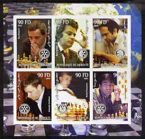 Djibouti 2004 Chess (Players) imperf sheetlet containing 6 values each with Rotary Logo, unmounted mint
