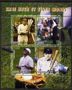 Djibouti 2007 Babe Ruth & Tiger Woods perf sheetlet containing 4 values unmounted mint