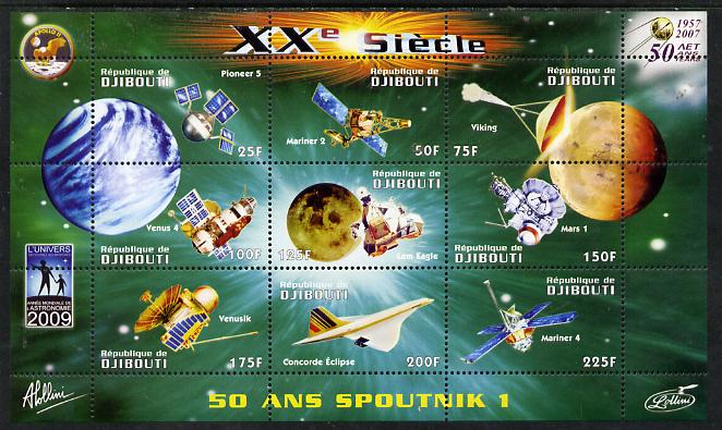 Djibouti 2009 50th Anniversary of Sputnik #01 perf sheetlet containing 9 values unmounted mint