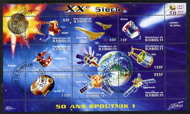 Djibouti 2009 50th Anniversary of Sputnik #02 perf sheetlet containing 9 values fine cto used
