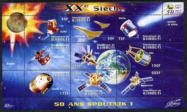 Djibouti 2009 50th Anniversary of Sputnik #02 perf sheetlet containing 9 values unmounted mint