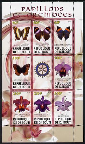 Djibouti 2010 Butterflies & Orchids #1 perf sheetlet containing 8 values plus label with Rotary logo unmounted mint