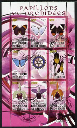 Djibouti 2010 Butterflies & Orchids #2 perf sheetlet containing 8 values plus label with Rotary logo fine cto used