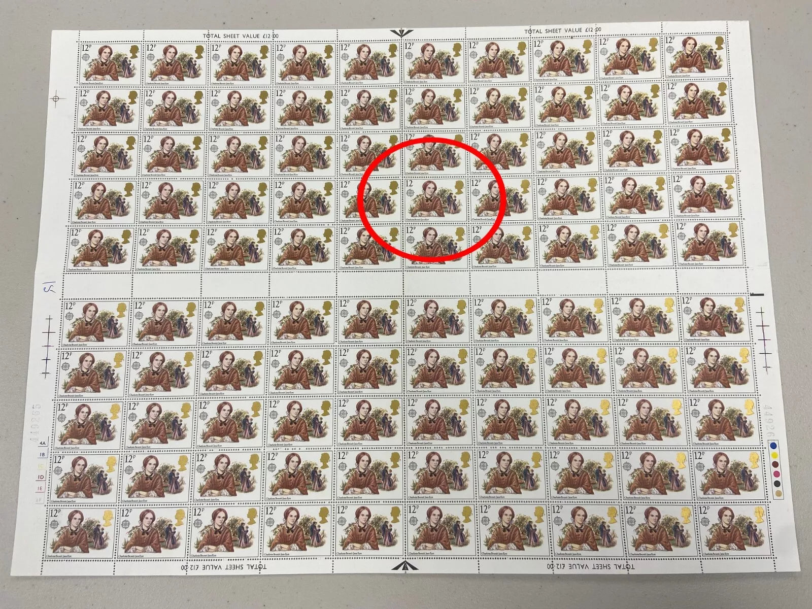 GB 1980 SG1125 Bronte Full Sheet with famous MISSING 'P' Variety/Error