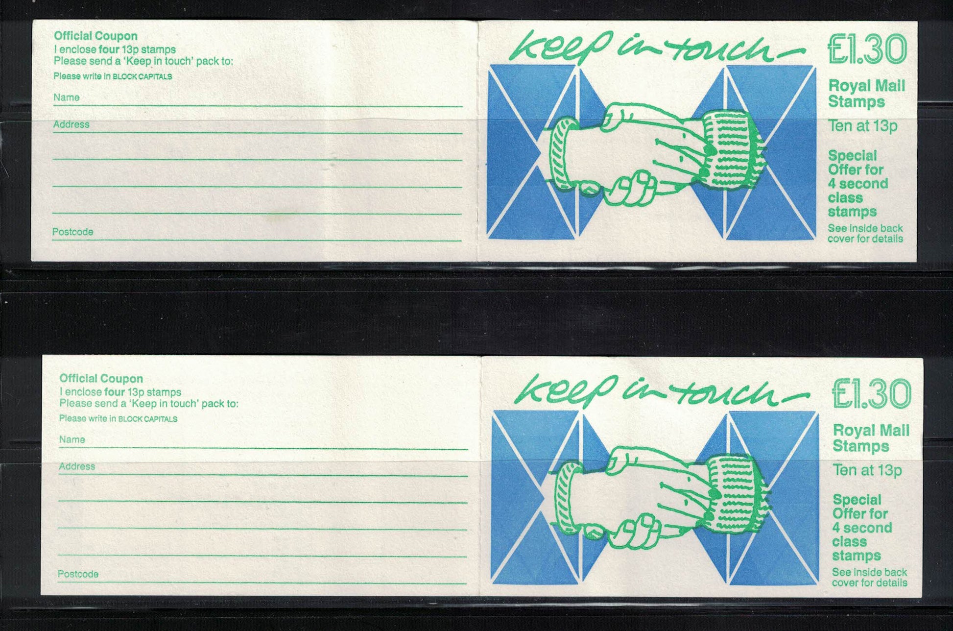 GB 1987 £1.30 "Keep in Touch" Booklet FL8A & FL8B U/M Good Perfs