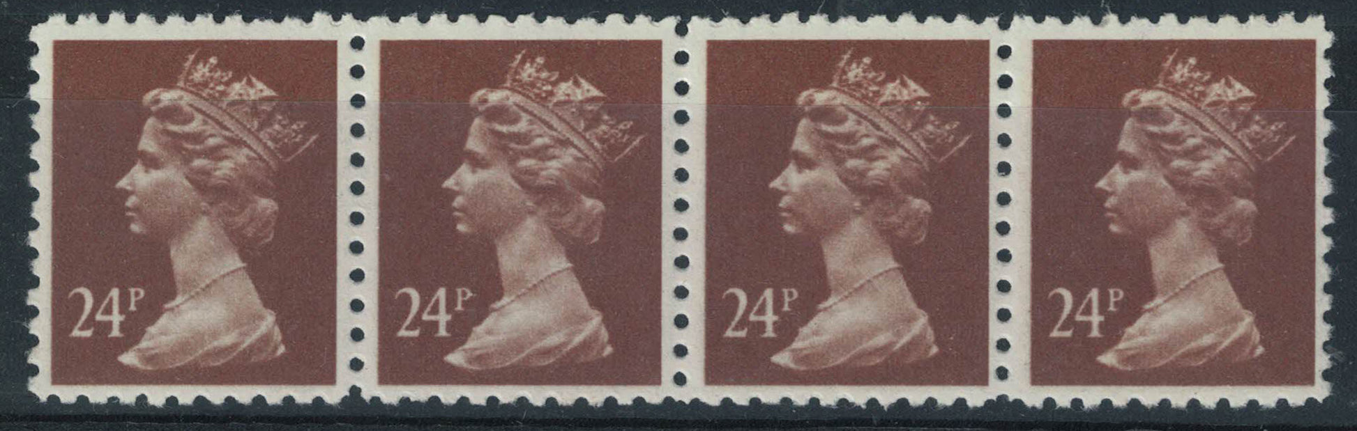 GB 1992 24p Light Brown FORGERY U/M Strip of 4