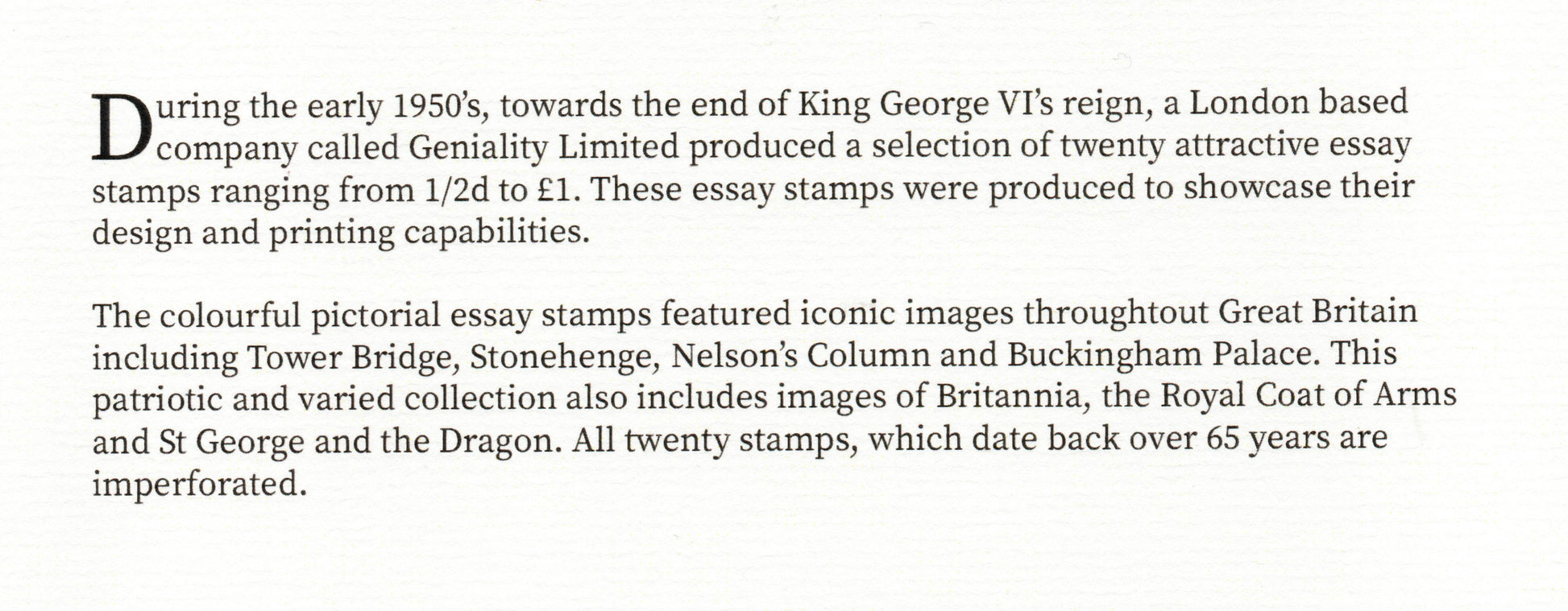 GB KGVI Geniality Essay Imperf set on Thin Card Complete. Details in Images