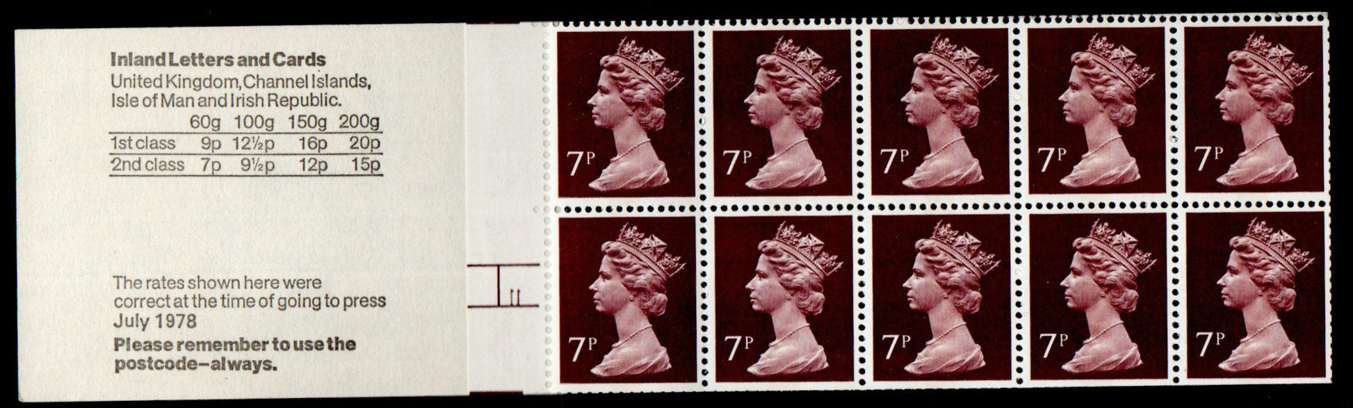 GB QEII 1978 70p Booklet FD4A Cyl Left Selvedge Trimmed Perfs Unmounted Mint
