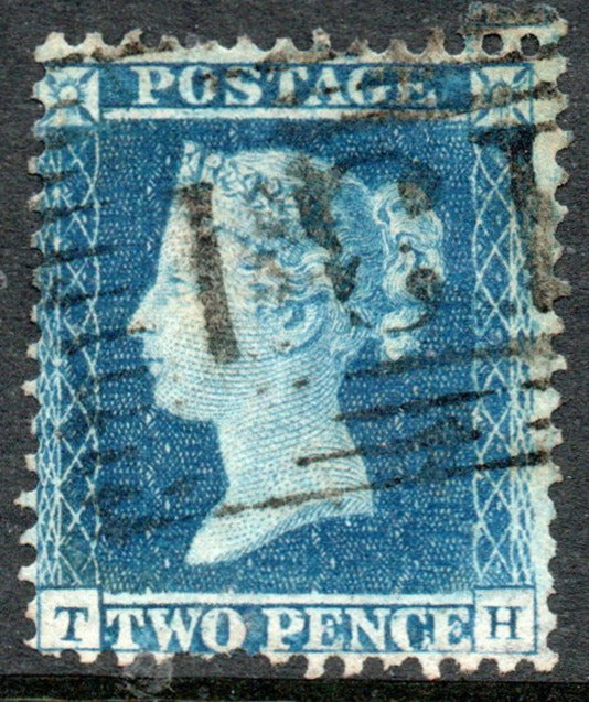 GB QV 1855 2d Blue SG27. Plate 5. Large Crown Perf 16 (T - H) (LPS108)
