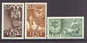 Ifni 1956 Colonial Stamp Day (Arms, Sheep & Drummer) set of 3 unmounted mint, SG 130-32