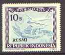 Indonesia 1948-49 perforated 10s produced by the Revolutionary Government in pale blue & purple showing 4-engined plane & Map, opt'd 'RESMI' (prepared for Official use) without gum