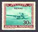 Indonesia 1948-49 perforated 30s produced by the Revolutionary Government in green & red-brown showing air-crew working on plane, opt'd 'RESMI' (prepared for Official use) without gum