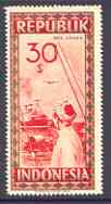 Indonesia 1948-49 perforated 30s produced by the Revolutionary Government in red-brown & brown showing plane over ship, prepared for postal use, without gum