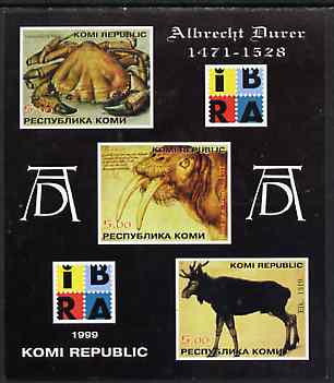 Komi Republic 1999 Albrecht Durer imperf sheetlet containing set of 3 values complete with IBRA imprint, unmounted mint (Drawings of Crab, Walrus & Elk)
