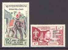 Laos 1960 World Refugee Year surch set of 2 unmounted mint, SG 103-104*