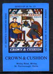 Match Box Labels - Crown & Cushion (No.13 from a series of 18 Pub signs) dark brown background, very fine unused condition (St George's Taverns)