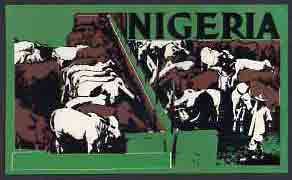 Nigeria - Original undenominated artwork probably submitted as essay for the 1973-74 definitive issue showing Cattle (Inscription cut out from overlay but marked 'Obudu Cattle Ranch' on reverse) by unknown artist 8" x 5" mounted on board