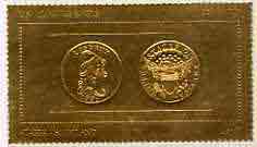 Staffa 1980 US Coins (1796 Quarter Eagle $2.5 coin both sides) on £8 perf label embossed in 22 carat gold foil (Rosen 887) unmounted mint