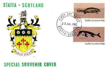 Staffa 1982 Prehistoric Marine Life (Placodus) perf set of 2 values on cover with first day cancel