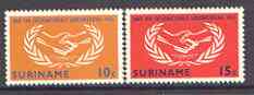 Surinam 1965 International Co-operation Year set of 2 unmounted mint, SG 549-50